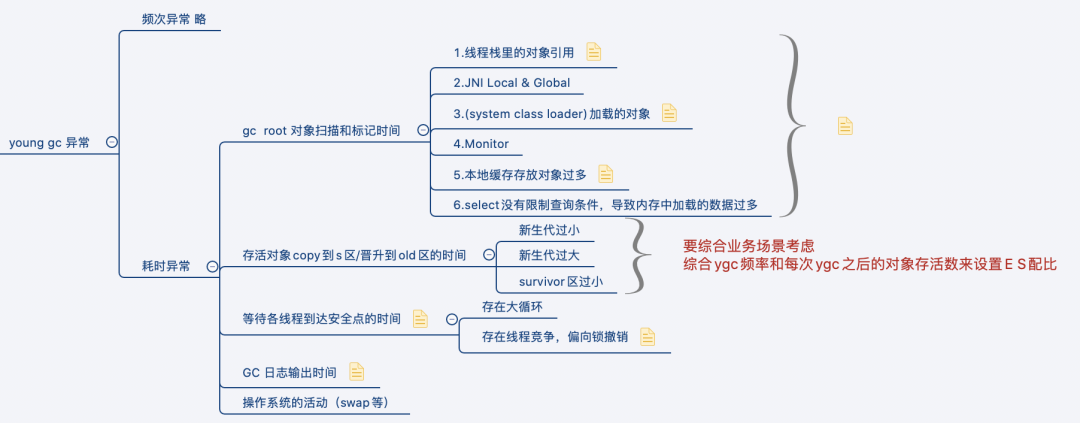 YGC频次暂且忽略,问题主要集中在gc耗时上面。想要解决YGC耗时问题,首先要搞清楚YGC的耗时节点。(据我所知的YGC问题,还没有逃出过这些维度)