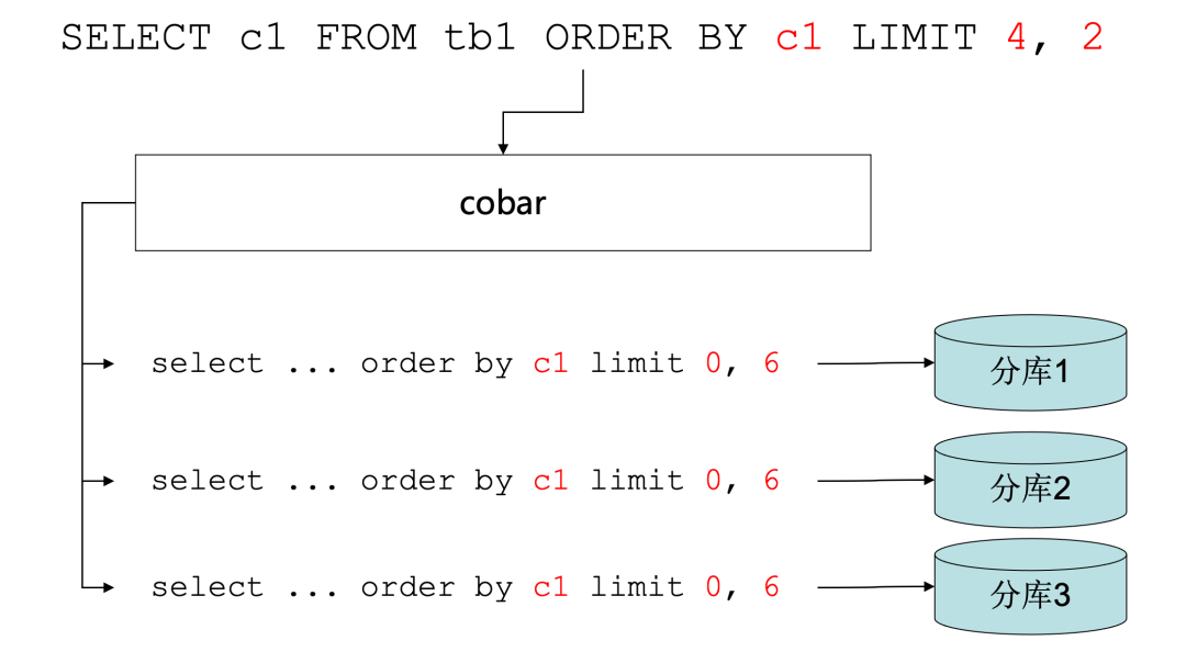当我们把数据分布到不同的数据库上时,再查询时如果是单条数据只要找到这条数据对应的库即可,但如果是多条数据,可能分布在不同的库上时,Cobar 就需要先查询,再聚合。