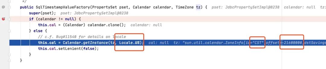 该方法加载了配置文件"/com/mysql/cj/util/TimeZoneMapping.properties"里面的值,经过转换,timeZoneMappings中,对应CST的为"CST"。