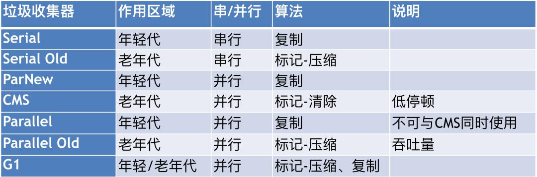 然后也要了解常见的垃圾收集器: