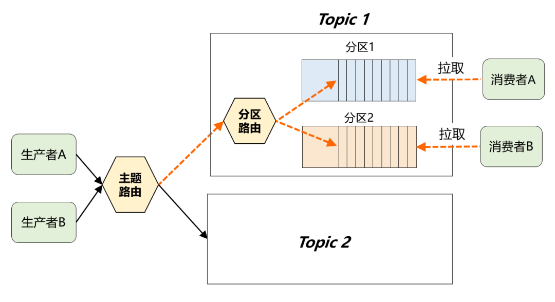 其中分区路由可以简单理解成一个 Hash 函数,生产者在发送消息时,完全可以自定义这个函数来决定分区规则。如果分区规则设定合理,所有消息将均匀地分配到不同的分区中。