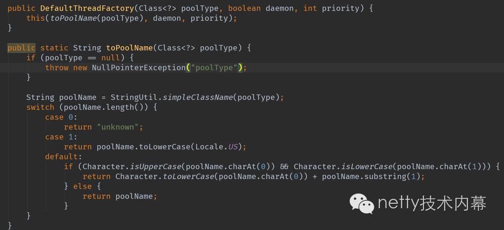这里是将poolType传进去并且使用了首字母为小写的简单类名,所以我们这里可以确定poolName就是nioEventLoopGroup,综合前面的结论,netty中nio线程默认名为nioEventLoopGroup-2-1格式