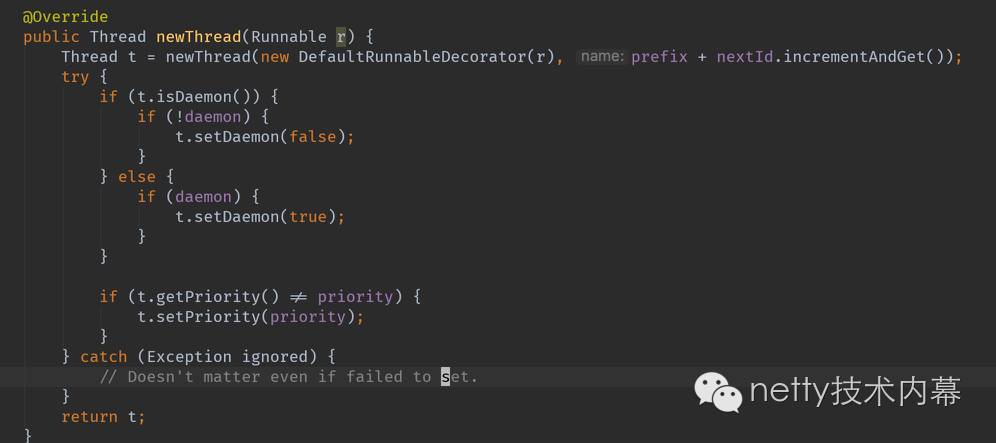 netty中的默认Nio线程都是由DefaultThreadFactory的newThread()方法创建出来的
