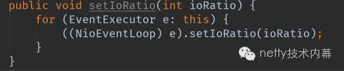 为什么要传递这个参数?netty的目的是应用的性能达到最高,netty默认情况下开启了两倍cpu核数个线程,按照第一小节的理论,必须保证cpu时间和io时间相等,也就是Tio = Tcpu,即ioTime = ioTime * (100 - ioRatio) / ioRatio)