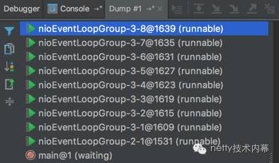 程序示例还是如上,我们创建了一个单线程的boss线程,一个2倍cpu线程数的worker线程,在程序跑了一段时间之后,我们发现线程堆栈有如下线程