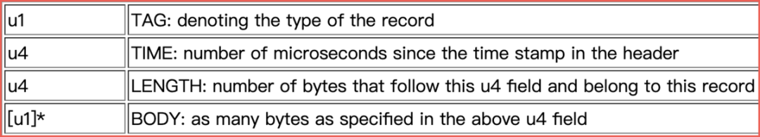 Hprof文件由Fixed Head和一系列的Record组成,Record包含字符串信息、类信息、栈信息、GC Root信息、对象信息。每个Record都是由1个字节的Tag、4个字节的Time、4个字节的Length和Body组成,Tag表示该Record的类型,Body部分为该Record的内容,长度为Length。