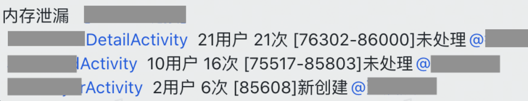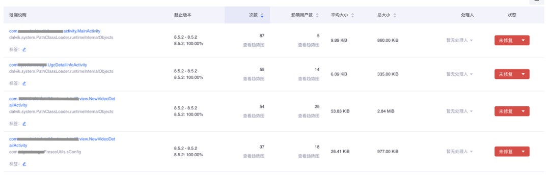 泄露的聚合效果如下,可以根据排序直接定位到高频泄露的Acitvity。