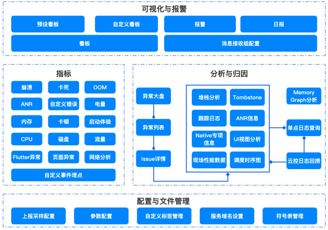 MARS-APMPlus 应用性能监控 为企业提供 针对应用的品质、性能以及自定义埋点的 APMPlus 应用性能监控服务,帮助团队打造极致的用户体验。 基于海量数据的聚合分析,平台可帮助客户发现多类异常问题,并及时报警,做分配处理,同时平台提供了丰富的归因能力,包括且不限于异常分析、**分析、自定义上报、单点日志查询等,结合灵活的报表能力可了解各类指标的趋势变化。 APMPlus 应用性能监控已服务了抖音、今日头条、TikTok 等多个超大规模用户量级移动 App。