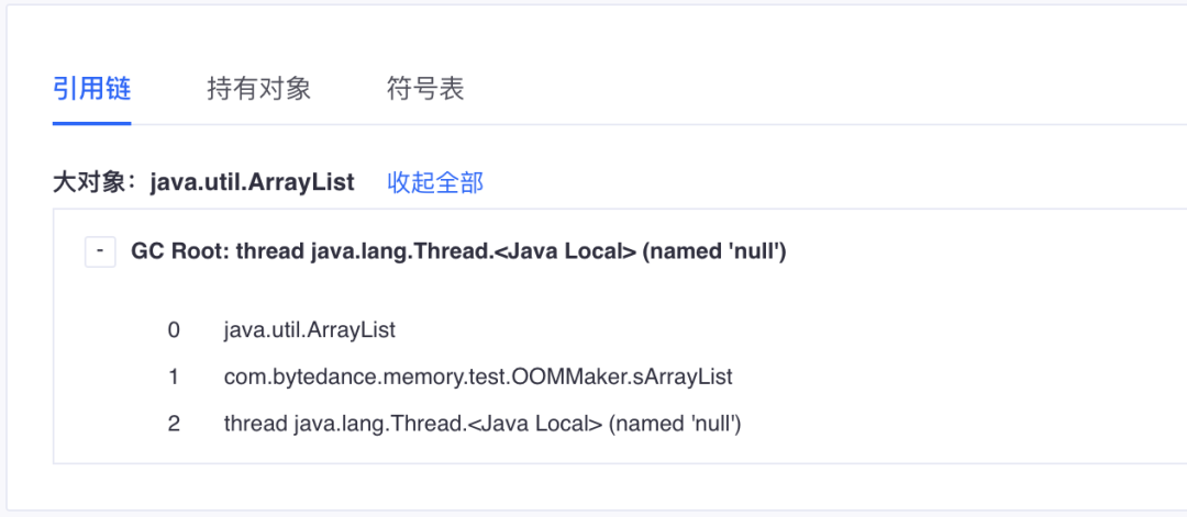 我们会解析出这部分类大对象,然后计算出他们的引用链。