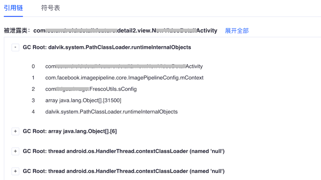根据GC引用链我们可以判断这个Activity泄露的原因,被谁持有导致的泄露,确认如何解决。