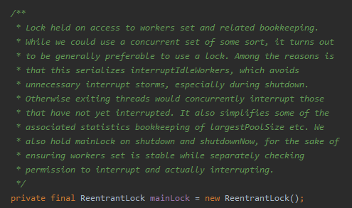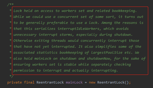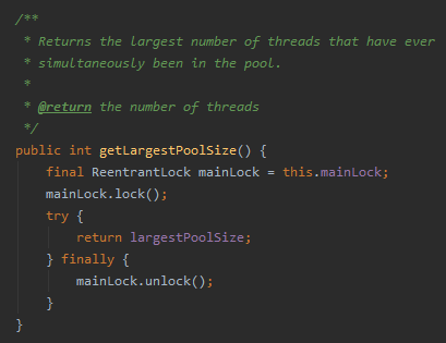 其实我个人觉得这个地方用 volatile 修饰一下 largestPoolSize 变量,就可以省去 mainLock 的上锁操作。