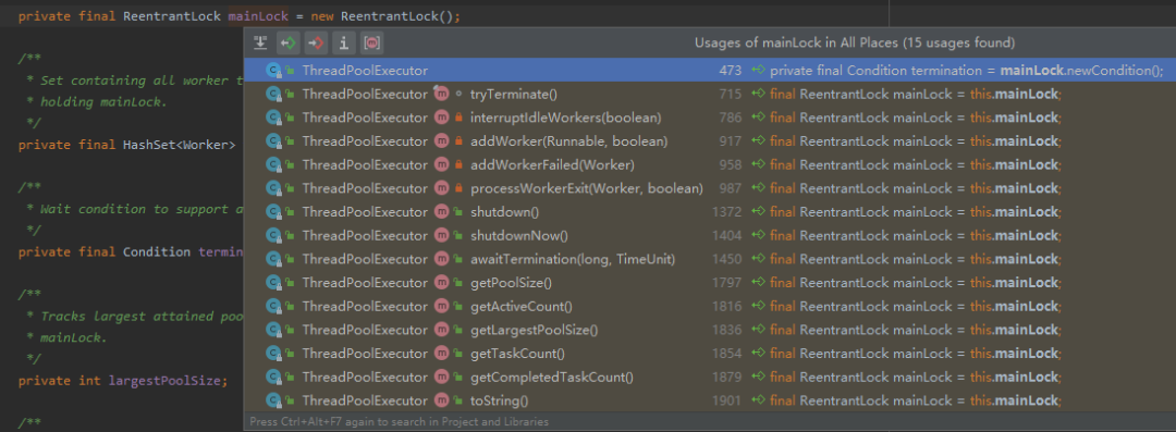 除了前面说的 mainLock 外,线程池里面其实还有一把经常被大家忽略的锁。