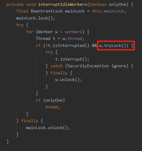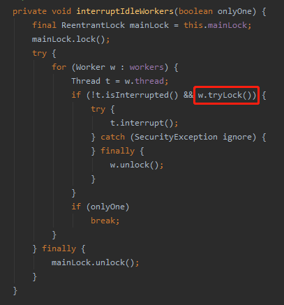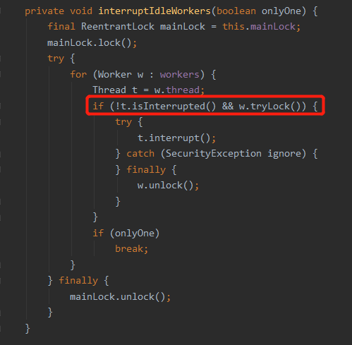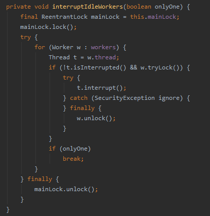 interruptIdleWorkers,这玩意根本就不是一个单词,这是线程池里面的一个方法: