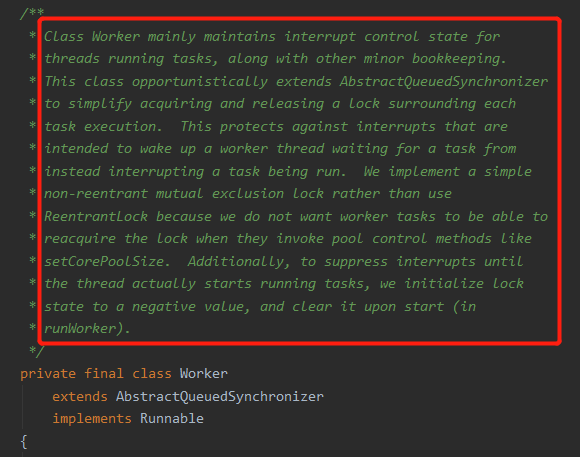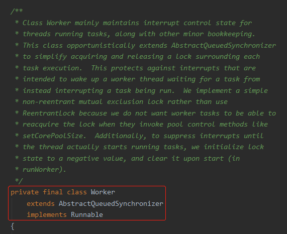 好了,前面说了这么多,你只要记住一个大前提:自定义 worker 类的大前提是为了维护中断状态,因为正在执行任务的线程是不应该被中断的。