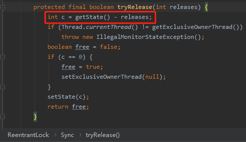 释放锁的时候,又有一个与之对应的递减的过程,减到 0 就是当前线程释放锁成功: