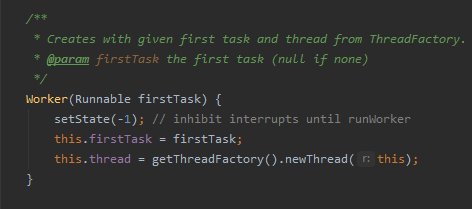 这句话就是说为了在线程真正开始运行任务之前,抑制中断。所以把 worker 的状态初始化为负数(-1)。