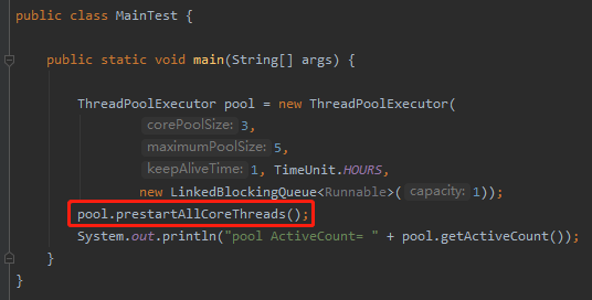 首先我们定义一个线程池,然后调用 prestartAllCoreThreads 方法把所有线程都预热起来,让它们处于等待接收任务的状态。