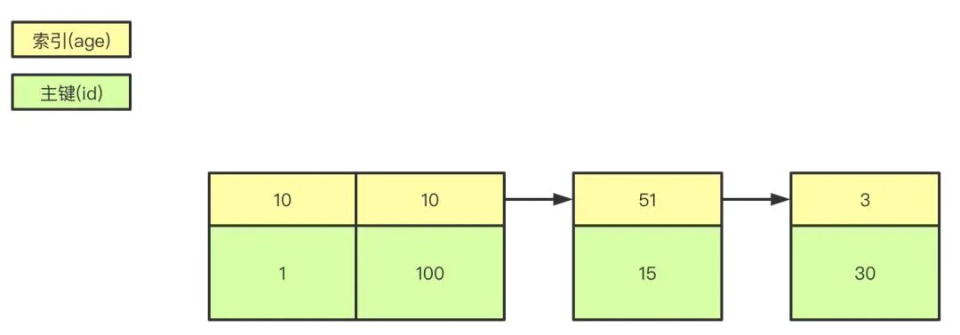 这是主键聚簇索引存储的结构,那么非聚簇索引的结构是什么样子呢?非聚簇索引(二级索引)保存的是主键id值,这一点和myisam保存的是数据地址是不同的。