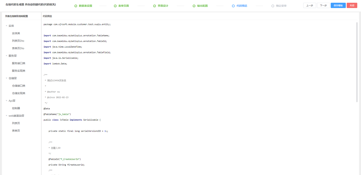 代码生成器:通常由数据表、表单页、界面等几部分组成,用于拖拽式表单页的代码生成,可直接自定义代码文件位置用于二次开发,部分平台则采用下载后修改的方式,不如前一种便捷。