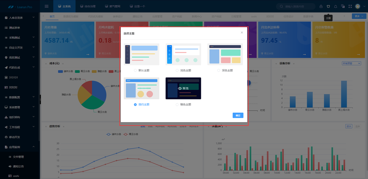 基于UI界面设计的个性化要求,低代码平台应提供不同的主题模板以供不同的行业人群使用。