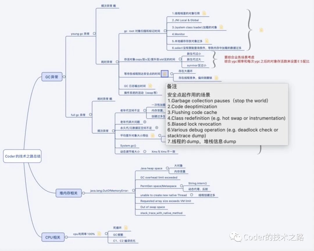 等待线程到达安全点导致young gc时间增加。比如,大循环、线程间竞争等等。从GC日志中安全点中,和等待的线程数可以看出端倪。 -