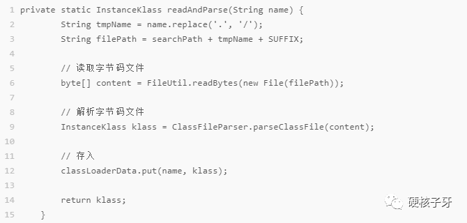 将硬盘上的字节码文件读入内存,触发解析。核心代码如下