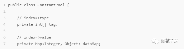 解析常量池。常量池设计如下,tag用int数组来存储,value用一个map容器来存储