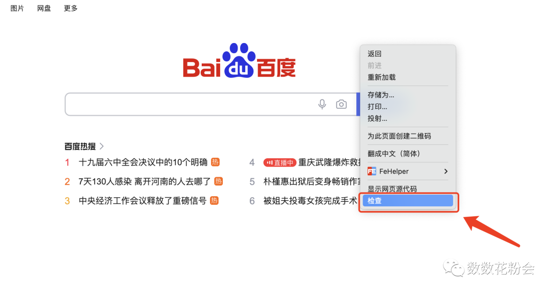 1. 打开 Chrome 浏览器,右键点击空白处,选择检查。