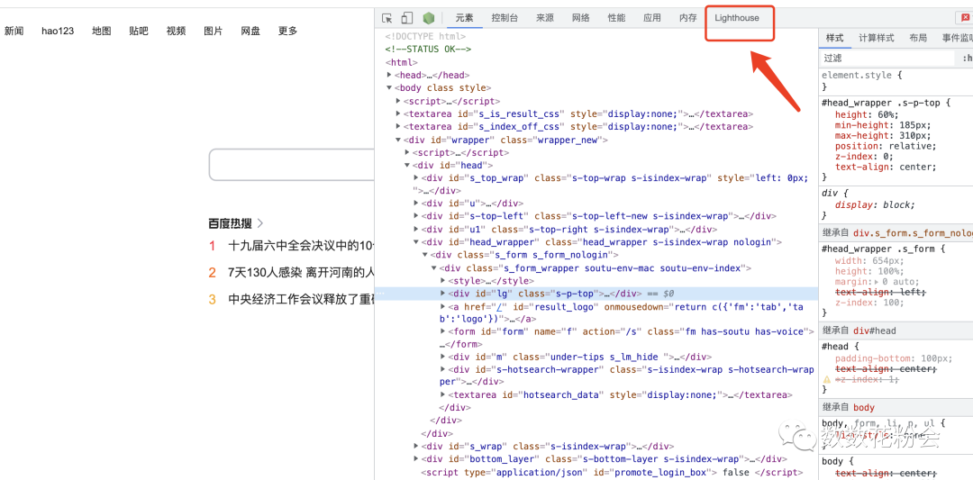 1. 如果工具栏里没有 Lighthouse 选项卡,可以通过设置让其显示。