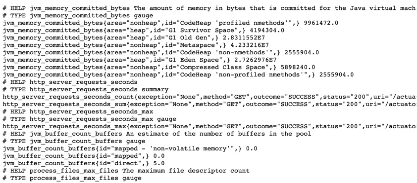 启动之后,我们就可以通过访问 http://localhost:8080/actuator/prometheus 来获取监控数据。