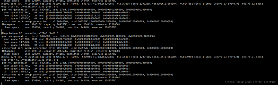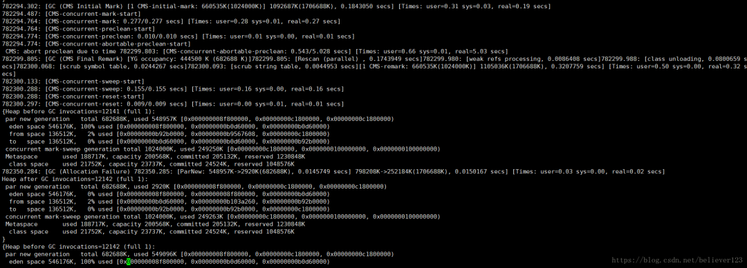 一看参数,马上觉得新生代为什么这么小,这么小的话怎么提高吞吐量,而且会导致YoungGC的频繁触发,如上如的新生代收集就耗时830s。初始化堆内存没有和最大堆内存一致,查阅了各种资料都是推荐这两个值设置一样的,可以防止在每次GC后进行内存重新分配。基于前面的知识,于是进行了第一次的线上调优:提升新生代大小,将初始化堆内存设置为最大内存。