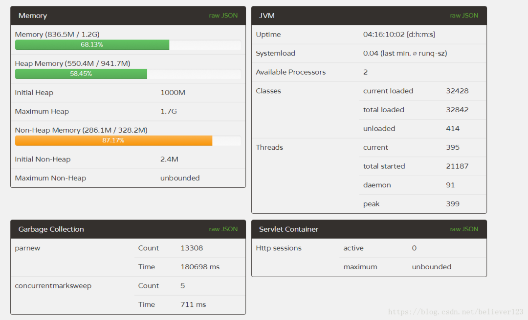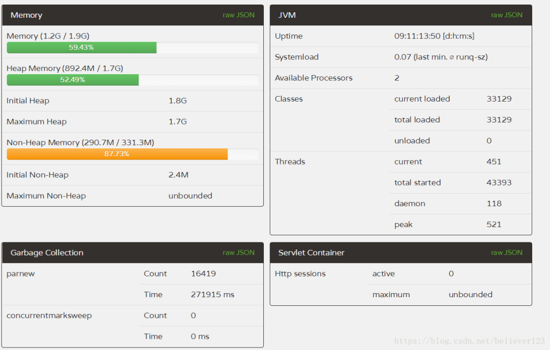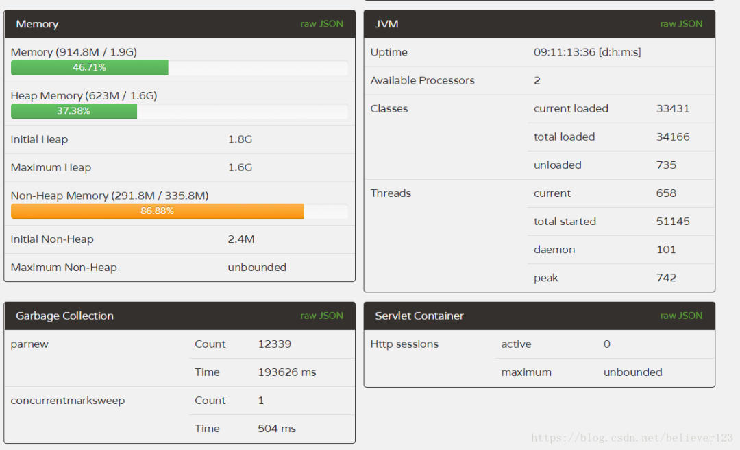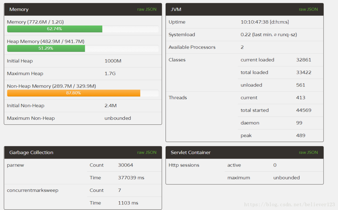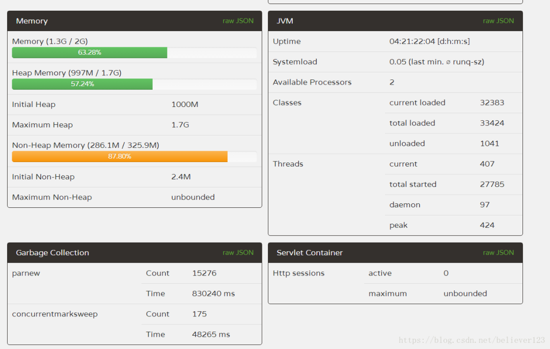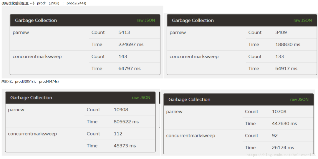 首先服务器的配置非常一般(2核4G),总共4台服务器集群。每台服务器的FullGC次数和时间基本差不多。其中JVM几个核心的启动参数为: