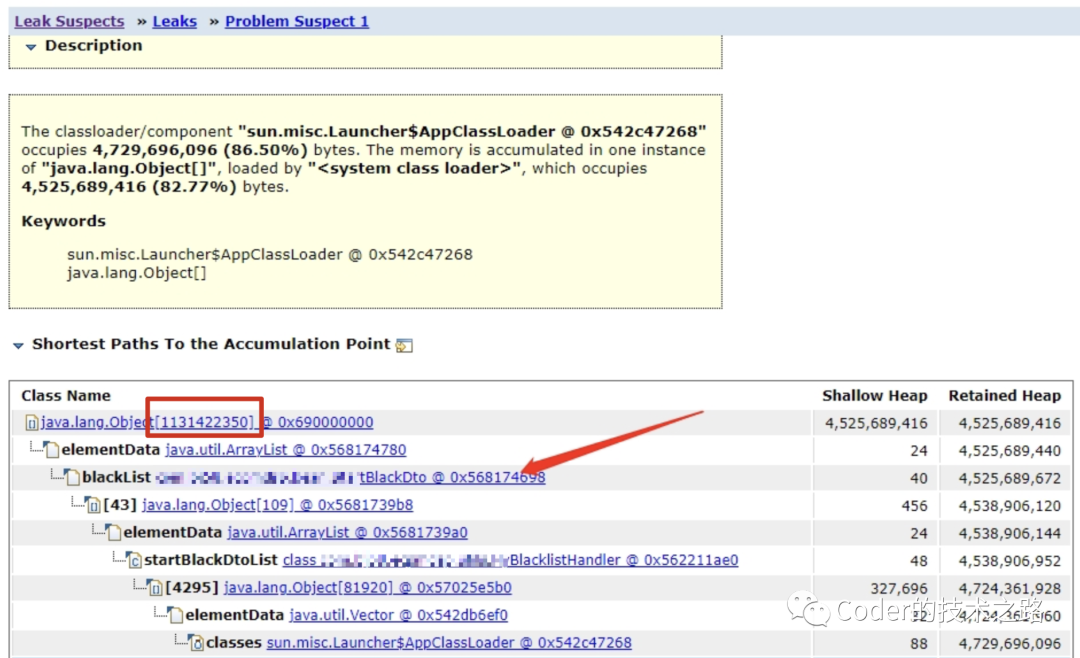 最后原来是因为在代码中设置了静态集合存储业务规则,又因为配置问题,触发了代码隐藏的异常,流量每次命中该规则时,就会将全量名单再次添加一次到集合列表,导致列表一再扩容,直到内存达到阈值。