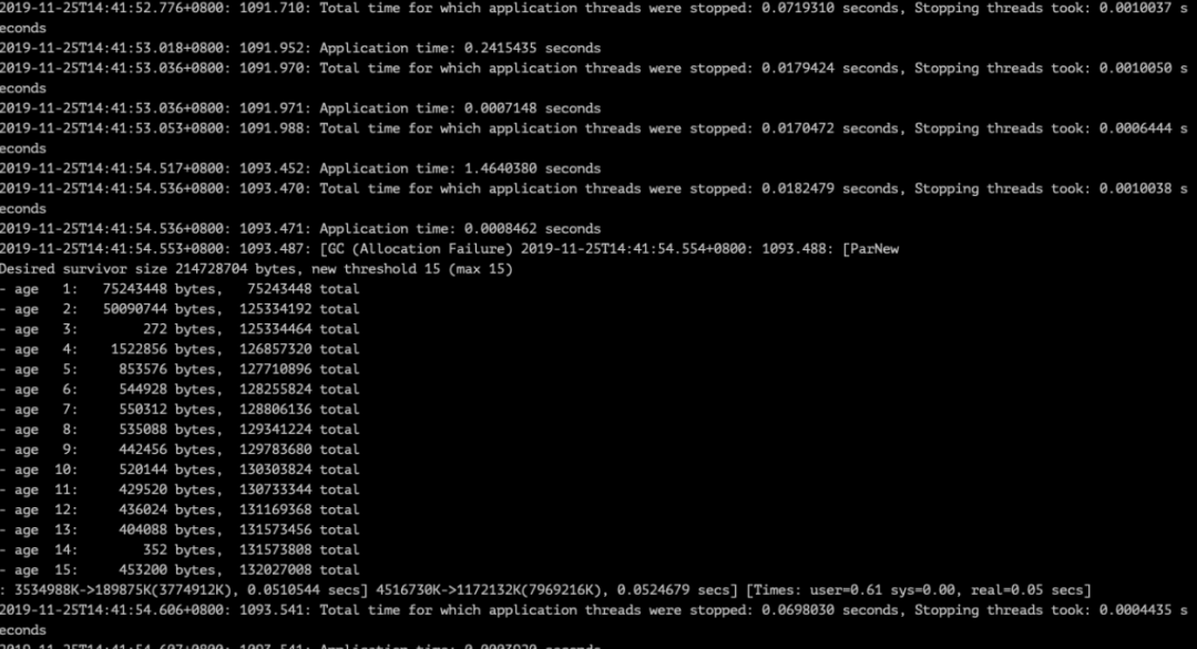 调整完 JVM 参数后先是对服务进行压测,发现性能确实有提升,也没有发生严重的 GC 问题,之后再把调整好的配置放到线上机器进行灰度,同时收集 gc log,再次进行分析。