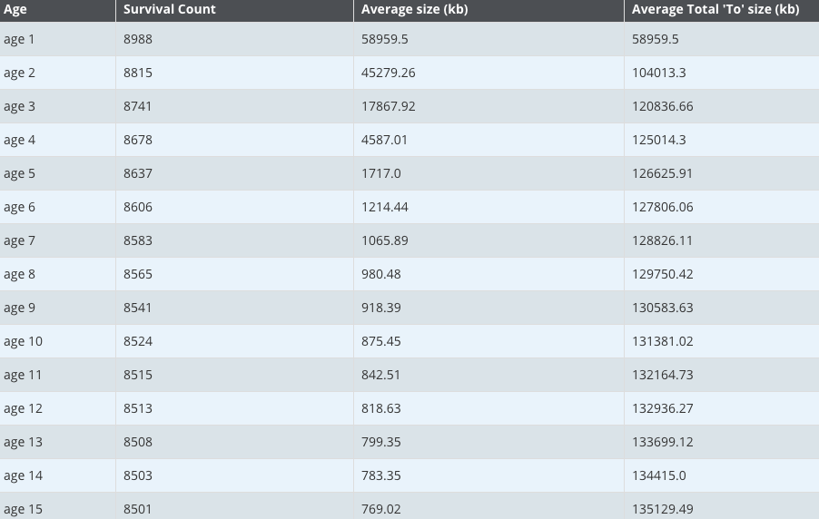 所以这十五个分代内的对象会一直在两个 survivor 区之间来回复制,再观察各分代的平均大小,可以看到,四代以上的对象已经有一半都会保留到老年区了,所以可以将这些对象直接提升到老年代,以减少对象在两个 survivor 区之间复制的性能开销。