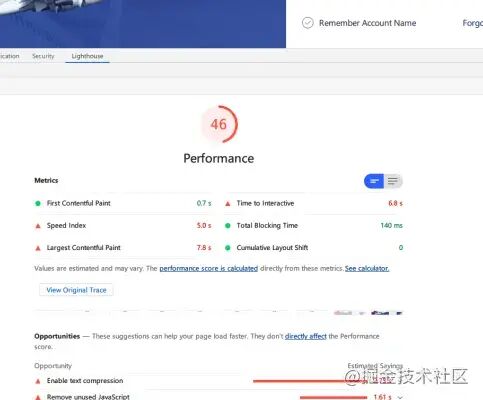 • lighthouse score(performance):Chrome浏览器审查工具性能评分(也可以npm install -g lighthouse,编程式调用)