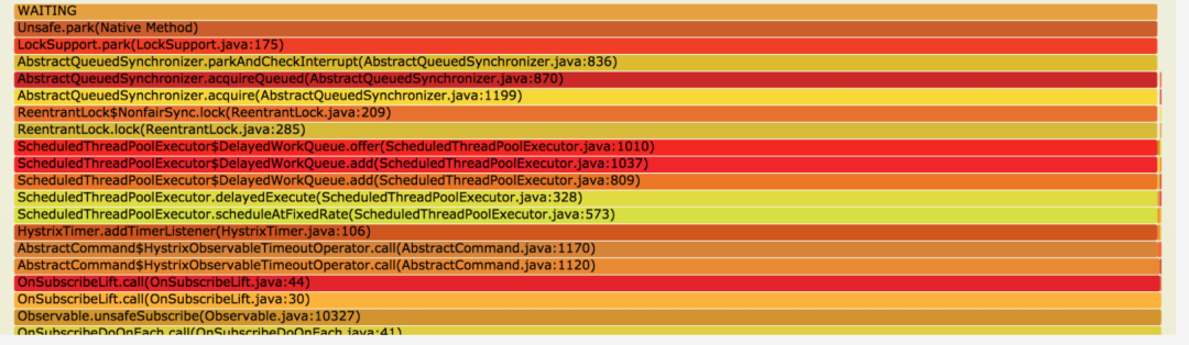 这时候可以对运行时线程栈来分析,我使用 jstack 打印出线程栈,并将多次打印的结果制作成火焰图(参见 应用调试工具-火焰图)来观察。