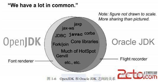 其实Sun自JDK 1.5之后就开始以Java Research License(JRL)的形式公布过Java源码,主要用于研究人员阅读(JRL许可证的开放源码至JDK 1.6 Update 23为止)。把这些JRL许可证形式的OracleJDK源码和对应版本的OpenJDK源码进行比较,发现除了文件头的版权注释之外,其余代码基本上都是相同的,只有字体渲染部分存在一点差异,Oracle JDK采用了商业实现,而OpenJDK使用的是开源的FreeType。