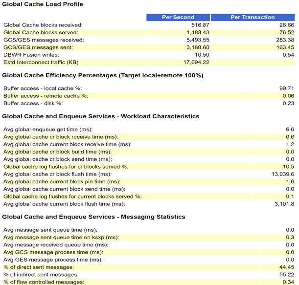Normally CR block buffer processing does not include the ‘gc cr block flush time’. However, when a CR buffer is cloned from a current buffer that has redo pending, a log flush for a CR block transfer is required. A high percentage is indicative of hot blocks with frequent read after write access.