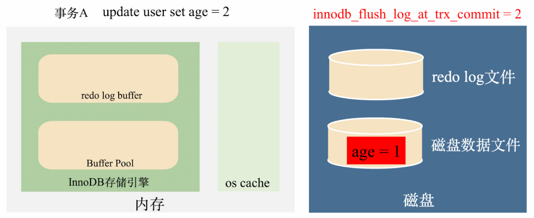 还是上面的那个例子,如果三个事务执行完毕,在age = 4还没有刷到磁盘的时候,突然断电,数据就全部丢掉了: