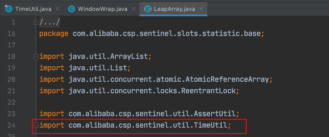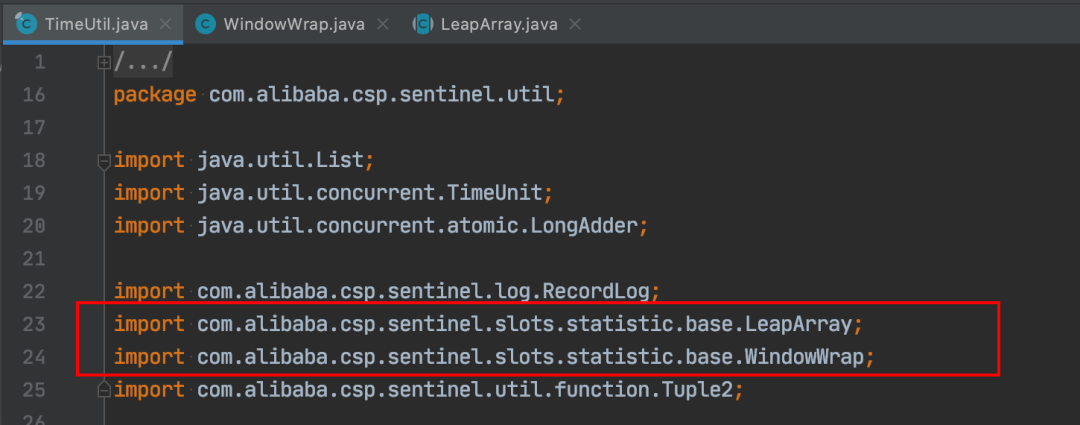 我们的时间戳获取方法在包util中,然后我们使用的统计QPS相关的实现在base包中,util包依赖了base包,这个很好理解,反之,base包也依赖了util包,base包主要也使用了CurrentTimeMillis方法来获取当前时间戳。我这里截个图,但不止这些,有好几个地方都使用到了: