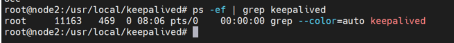 执行下面这个命令可以查看 keepalived 进程,发现已经没有了。(控制台显示的 grep --color=auto keepalived 表示是查找命令)