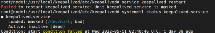 Failed to restart keepalived.service: Unit keepalived.service is masked.