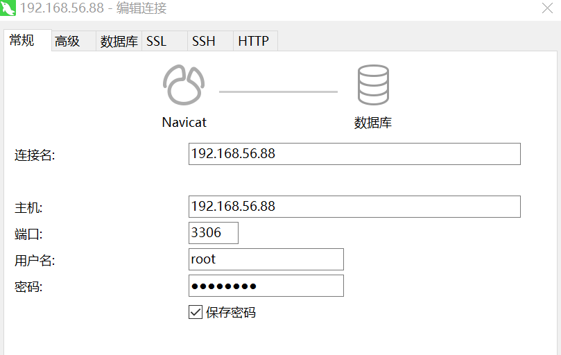 首先用 mysql 客户端工具 navicat 连接虚拟 ip 地址,账号和密码就是 node 1 和 node2 的 mysql 账号密码(root/123456)