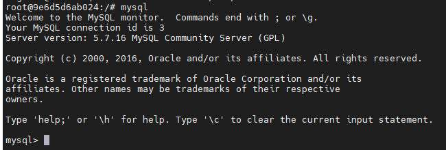 重新计入 mysql 容器,连接 mysql,不需要密码就可以连接上 mysql。