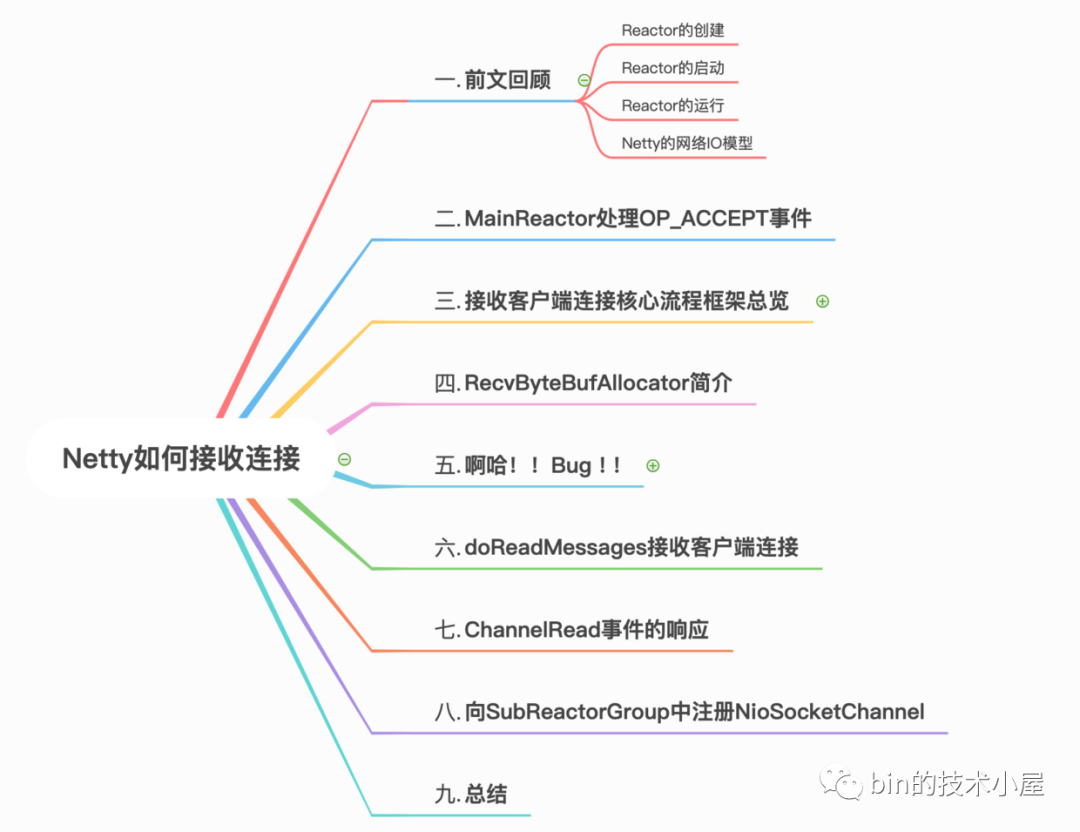 在骨架搭建完毕之后,我们随后又在在?《详细图解Netty Reactor启动全流程》》一文中介绍了本文的主角服务端NioServerSocketChannel的创建,初始化,绑定端口地址,向main reactor注册监听OP_ACCEPT事件的完整过程。