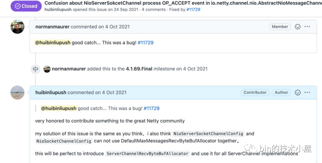 于是笔者就在Github提了一个?Issue#11708,阐述了下这个Bug产生的原因以及导致的结果并和Netty的作者一起讨论了下修复措施。如上图所示。