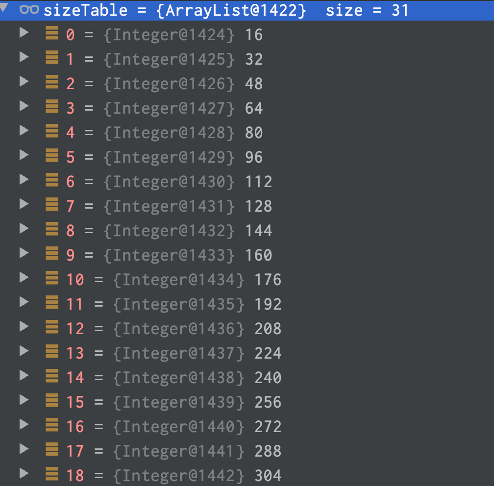 它的目的就是根据给定容量,在扩缩容索引表SIZE_TABLE中,通过二分查找找到最贴近给定size的容量的索引下标(第一个大于等于 size的容量)