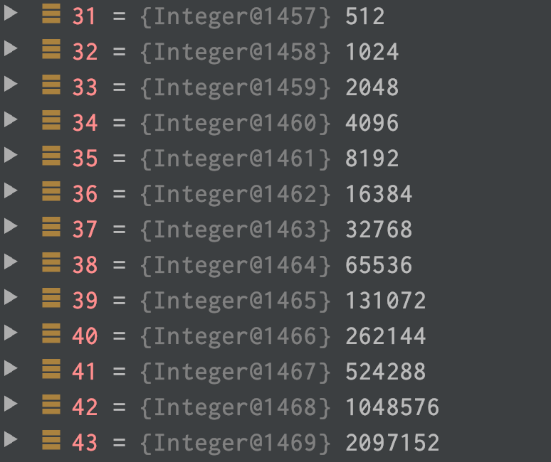 index:当前容量在扩缩容索引表SIZE_TABE中的index。初始是33。 -