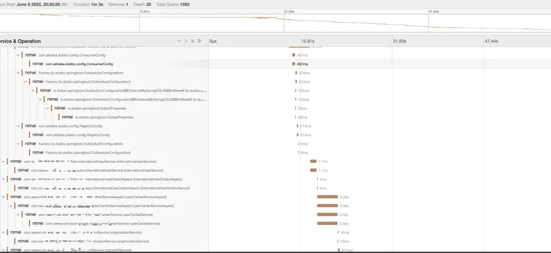 Spring bean 的初始化是串行进行的,于是我先来做一个可视化 timeline,看看到底是哪些 Bean 耗时很长。